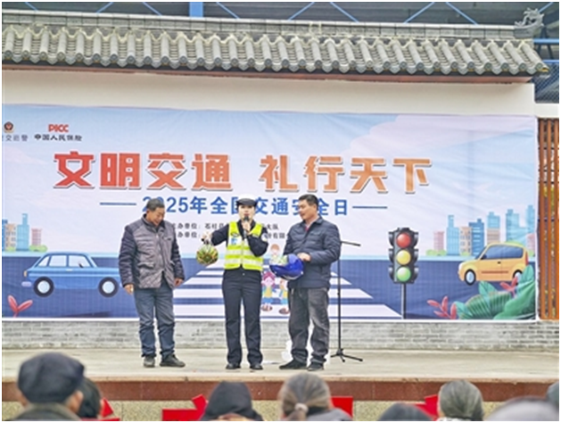 近日,石柱县公安局交巡警大队联合人保财险石柱支公司,在三河镇川主社区广场开展“文明交通、礼行天下”主题宣传活动,共吸引400余人参与。