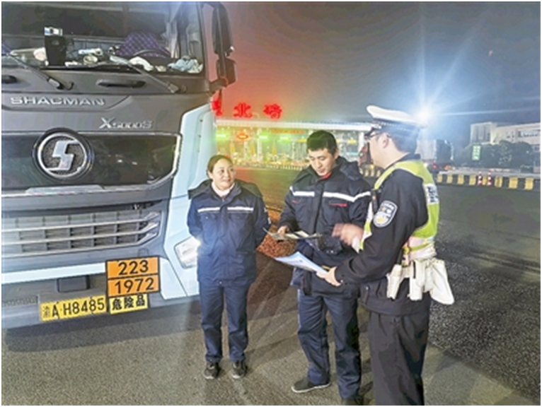 针对冬季夜间多雾、通行风险升高的特点,近日,市公安局交通管理总队高速公路第一支队北碚大队民警,面向危化品车辆驾驶员及押运员开展了专项安全宣传。