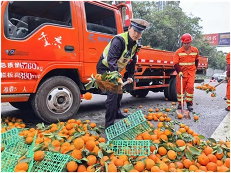 近日,G50沪渝高速重庆长寿段,一辆小货车侧翻,血橙散落一地。接警后,市公安局交通管理总队高速公路第四支队长寿大队民警迅速到场,设置警戒、疏导交通,并化身“搬运工”清理转运血橙。约30分钟后,道路恢复畅通。