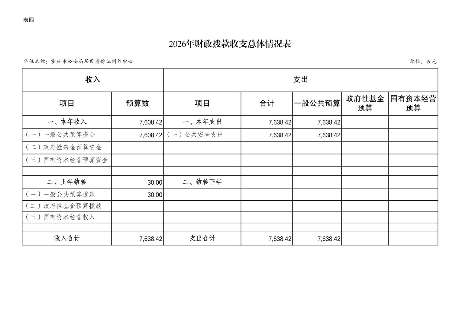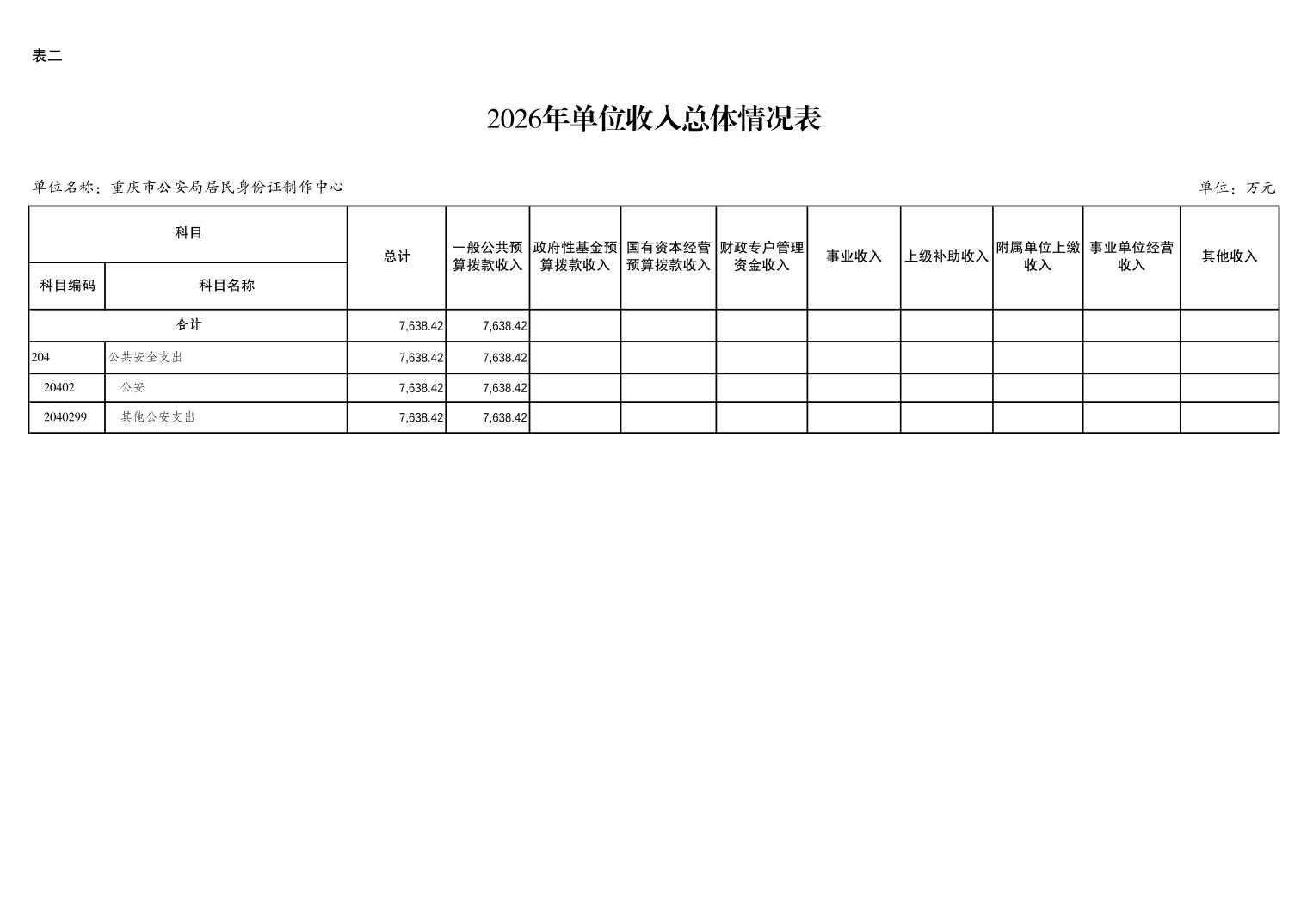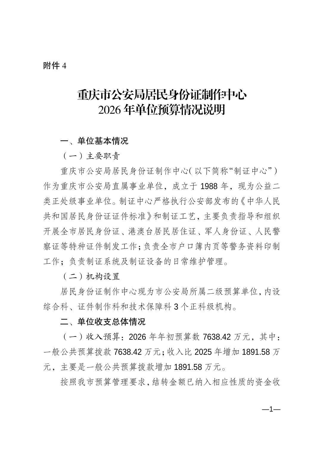 重庆市公安局居民身份证制作中心2026年单位预算情况说明