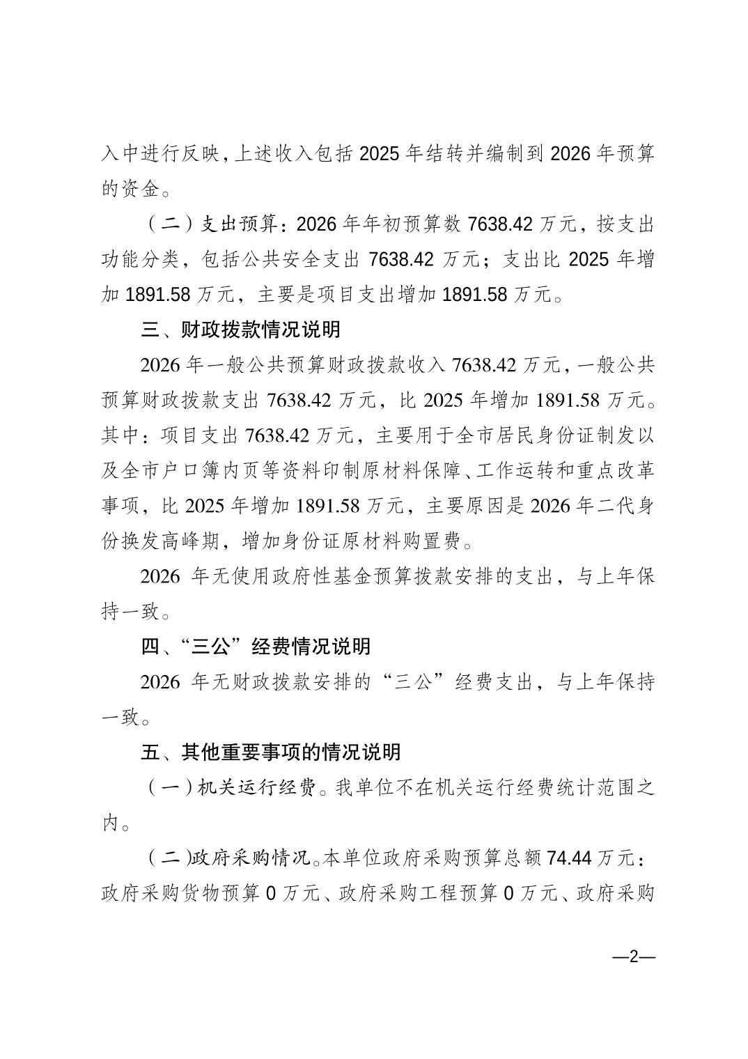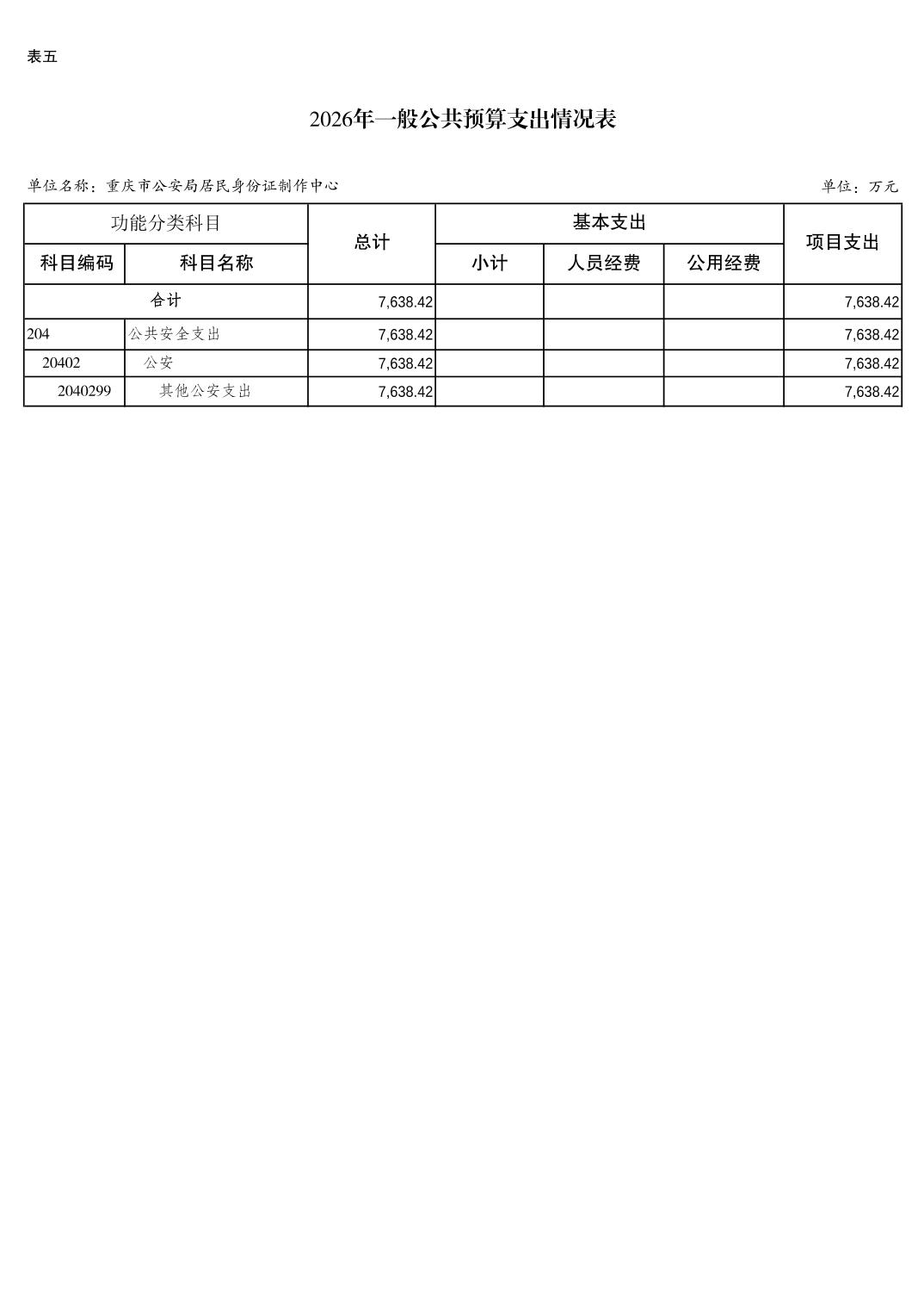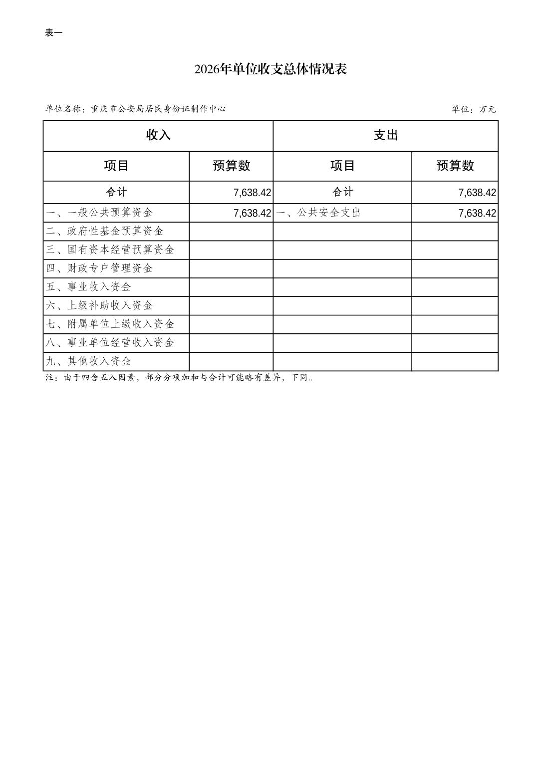 重庆市公安局居民身份证制作中心2026年单位预算情况说明