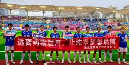 渝北区禁毒工作办公室在“渝超”足球赛事渝北赛场,以“热爱运动 拒绝毒品 拒绝兴奋剂”为主题开展“禁毒+反兴奋剂”融合宣传活动。