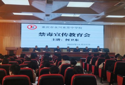 近日,永川区禁毒工作专项组办公室联合重庆市戒毒康复所,以禁毒宣教融入式工作模式深入来苏中学,开展“远离毒品 健康成长——防范新型毒品对青少年的危害”禁毒讲座,通过主题宣讲进一步提升广大师生的禁毒意识和自我保护能力,为构建无毒校园、护航青少年健康成长奠定基础。