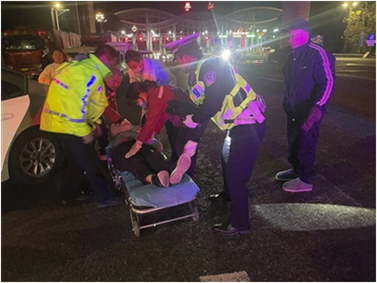 在垫江收费站,民警、辅警与医护人员默契配合,快速将李某平稳转移至救护车上。之后,垫江大队辅警又继续代驾李某的车辆,将车与同行的4名家属安全送达垫江县中医院。