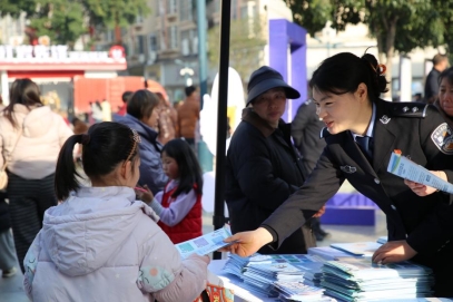 开州区公安局在新世纪锦新驿站广场开展禁毒主题宣传活动,民警借助