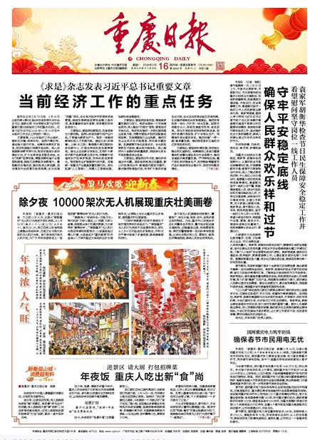 “我们针对活动特点,采取远端交通控流、近端圈层过滤、网格管控现场、穿插分割聚集、梯次用警增援等一系列科学有效措施,全力保障‘两江四岸’观看区域的现场秩序平稳。”重庆市公安局治安总队民警李吉庆介绍,通过立体化防控体系的构建,警方将实现对核心区、管控区、疏导区的精准把控,确保人员的安全有序流动,以万全准备守护人民群众平安喜乐过佳节。