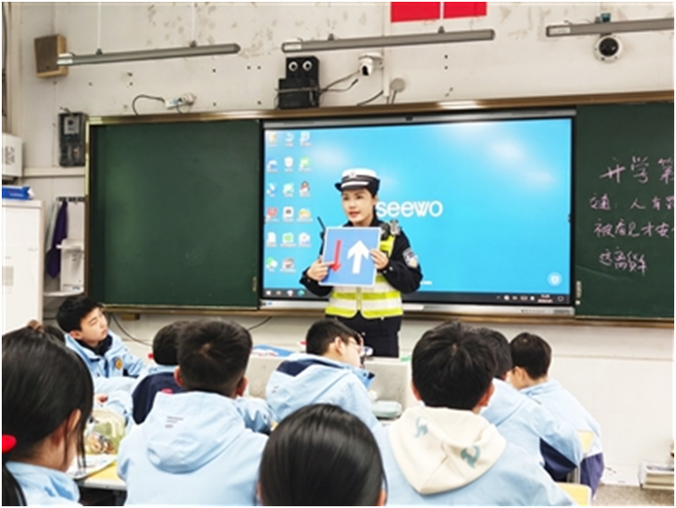 针对中学生,民警宣讲电动车骑行安全,告诫杜绝“鬼火”飙车等行为;针对小学生,传递“被看见才安全”理念,教导规避盲区风险。活动分龄施教,还倡导“小手拉大手”,为校园交通安全筑牢防线。