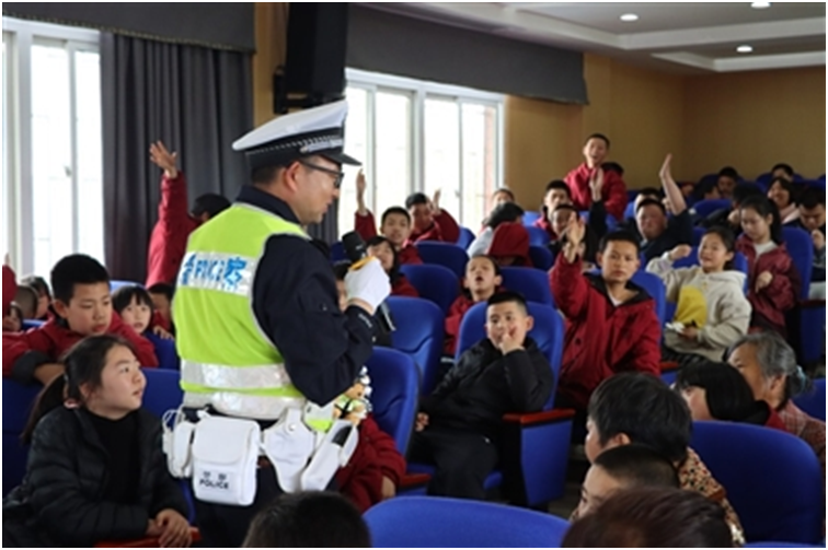 宣讲中,民警教孩子们认识了红绿灯、斑马线等基本交通标志,详细讲解了红灯停、绿灯行、黄灯亮了等一等的通行规则,叮嘱孩子们不在马路上嬉戏、停留,远离车辆盲区和“开门杀”等隐形风险。