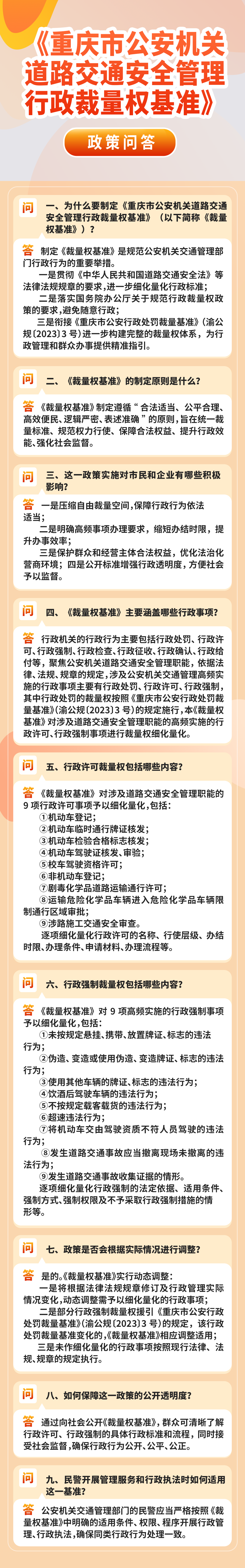 《重庆市公安机关道路交通安全管理行政裁量权基准》政策问答