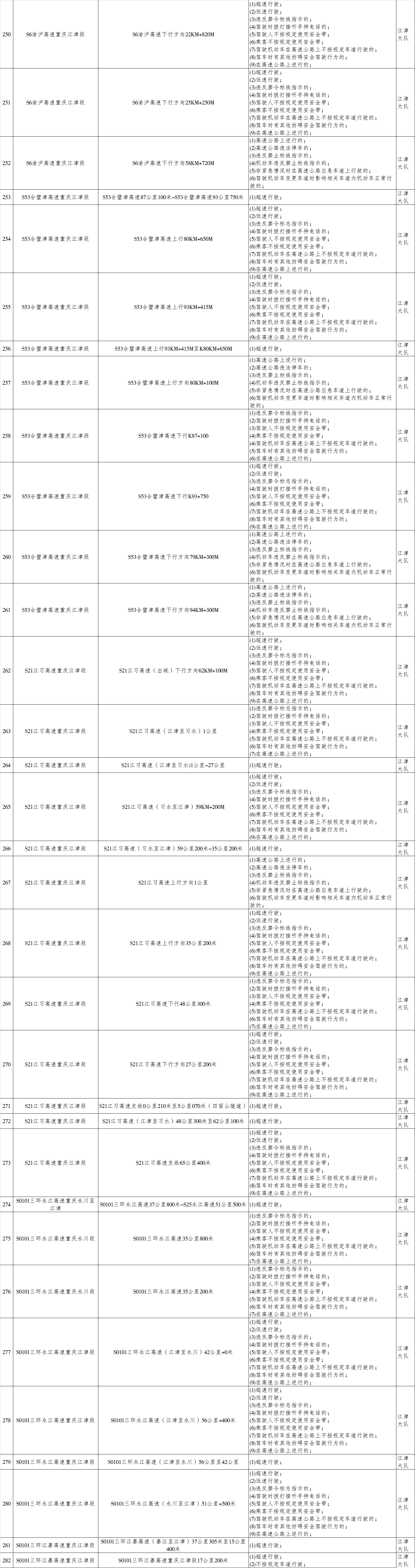 重庆市公安局交通管理总队高速公路第五支队辖区交通技术监控设备设置地点公示
